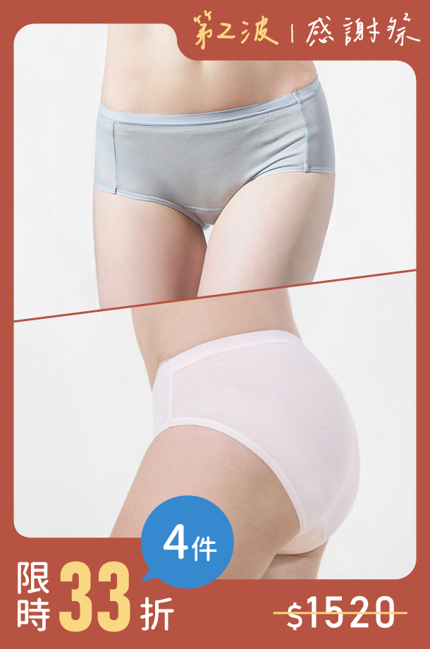 抗菌/保濕 中腰內褲 4件組 (惜福品)