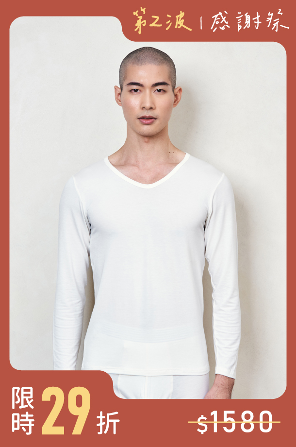 海藻潤膚V領長袖-男內搭衣 (惜福品)